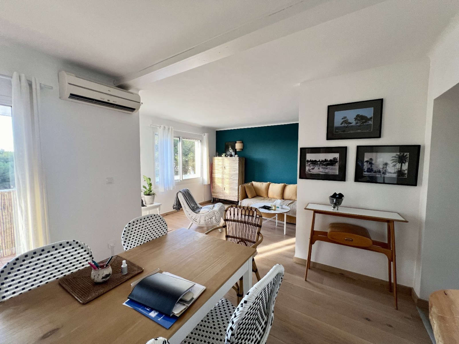 Dès l'entrée, vous retrouverez un salon-séjour lumineux offrant accès à une terrasse exposée Sud avec une vue dégagée sur la Mer.