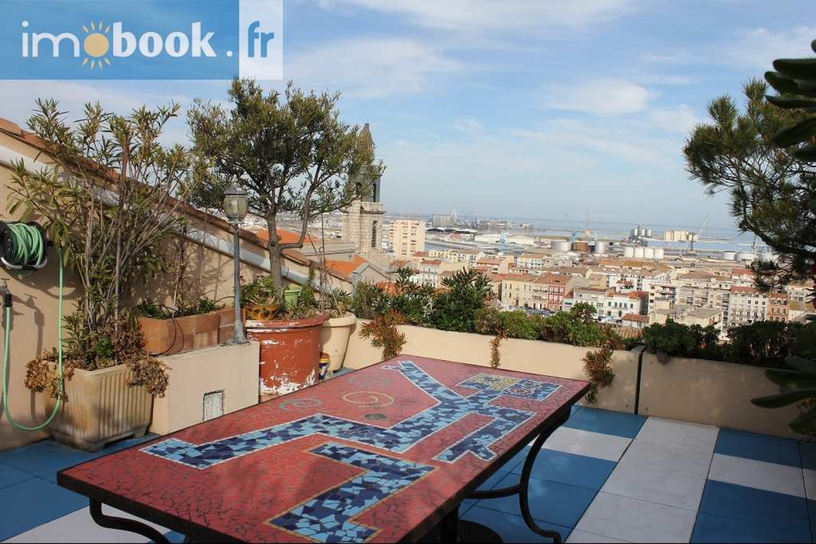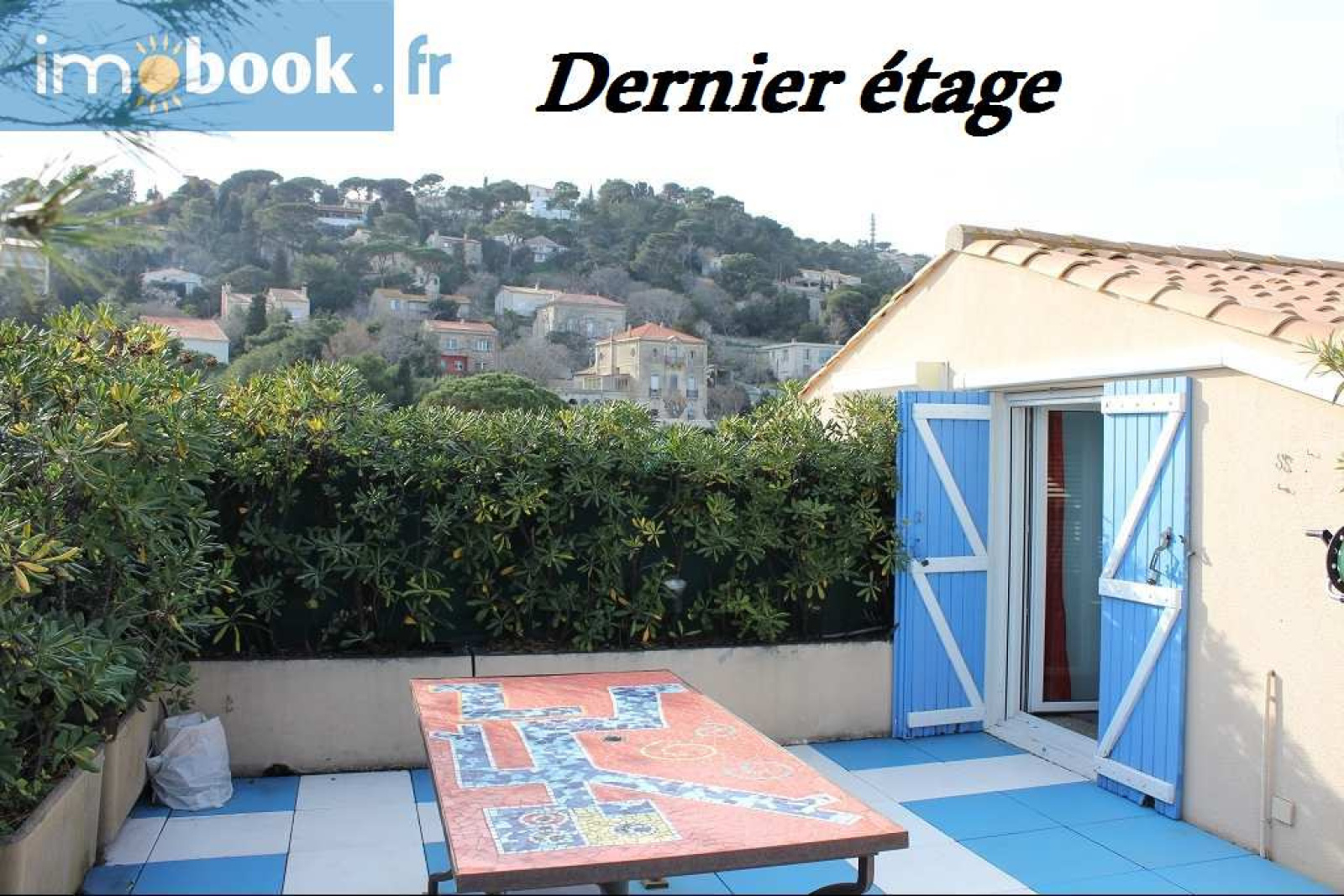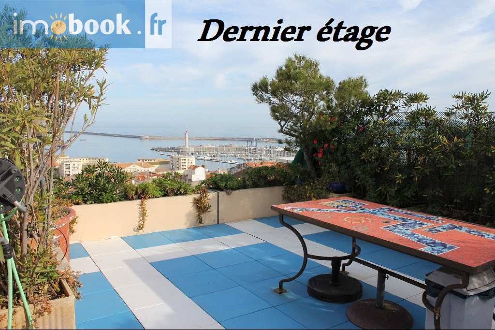Résidence Le Florence, Quartier Haut, Sur les hauteurs de la ville, dominant la mer, le port et les canaux, appartement T3 sur le toit avec ses grandes terrasses intimes, cheminée comme dans une villa...cellier Voir sans être vu... Coup de coeur assuré pour ce bel endroit Possibilité d'achat garage et / ou place de parking en sus.