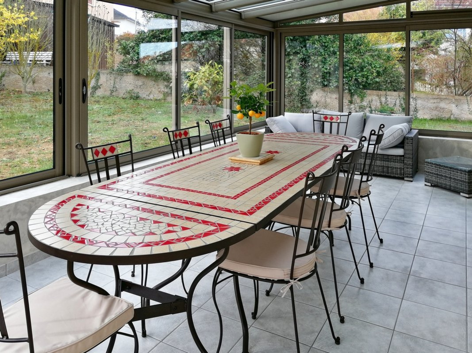 Côté Montuçon Maison T5 de plain-pied de 122 m2 sur un terrain arboré de 898 m2 dans un quartier calme et résidentiel Côté jour, un salon de 40 m2 avec cheminée avec insert donnant sur une véranda (le gros atout de cette maison, un espace de vie ou règne une ambiance dedans/dehors tous les mois de l'année). Une cuisine indépendante toute équipée, une grande chambre et deux autres chambres, un bureau, une salle d'eau rénovée et une buanderie, WC indépendant. Un garage indépendant de 30 m2, on peut stationner dans la propriété 8 véhicules, le plus un chalet qui rend de bons services au fond du jardin Très bon emplacement